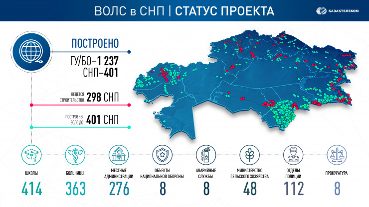Фактически сотовые операторы уже получили возможность разворачивать сети в казахстанских деревнях. Оператором Tele2 в содружестве с "Казахтелекомом" уже осуществлен пробный проект в селе Егендибулак Карагандинской области. ВОЛС даст возможность покрыть сетью порядка 5,5 тысячи деревень из 6 тысяч сельских населенных пунктов в республике, и доступ к широкополосному интернету получит около 90 процентов населения.
