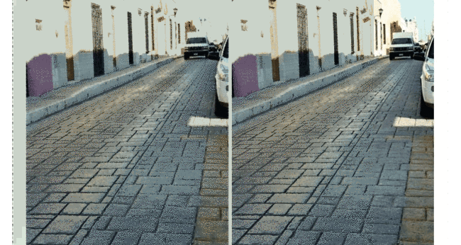 Однако дорога на изображениях выглядит по‐разному: на первом изображении она идет прямо, на втором - уходит вправо.
