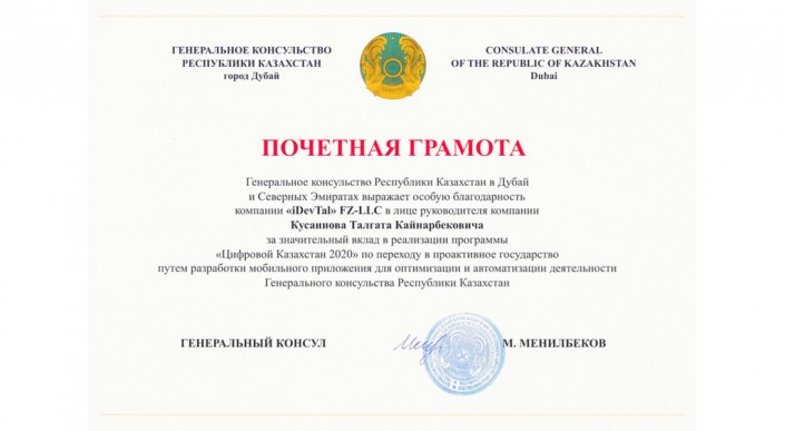 В 2017 году Талгат выпустил приложение для Генерального консульства Республики Казахстан в Дубае и
