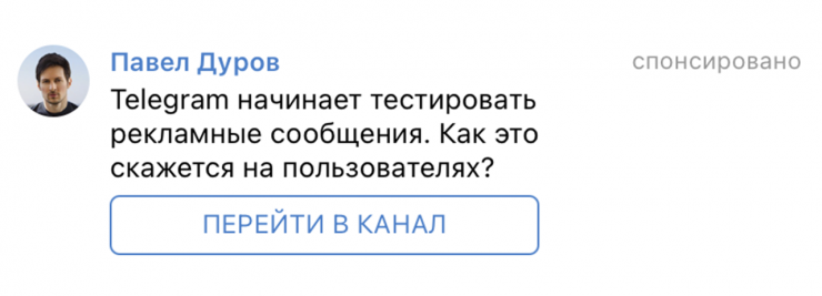 Отмечается, что официальные рекламные сообщения в Telegram будут ненавязчивыми. В них допускаются только короткие тексты без внешних ссылок или фотографий. Рекламное объявление может появиться только после просмотра всех новых сообщений в канале.
