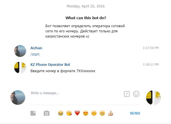 Алматинский программист Сергей Тян написал бота для Telegram, который умеет определять оператора сотовой связи по номеру телефона, сообщает корреспондент Tengrinews.kz.