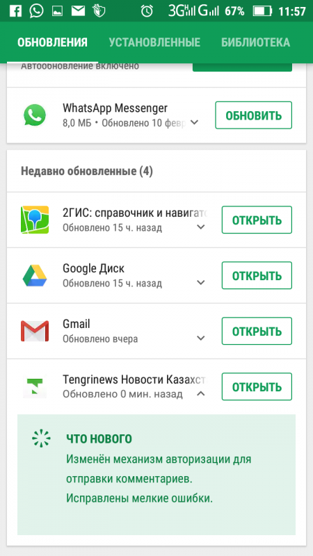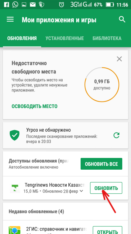 5. Нажимаем кнопку "Обновить", расположенную рядом с иконкой приложения Tengrinews.kz.