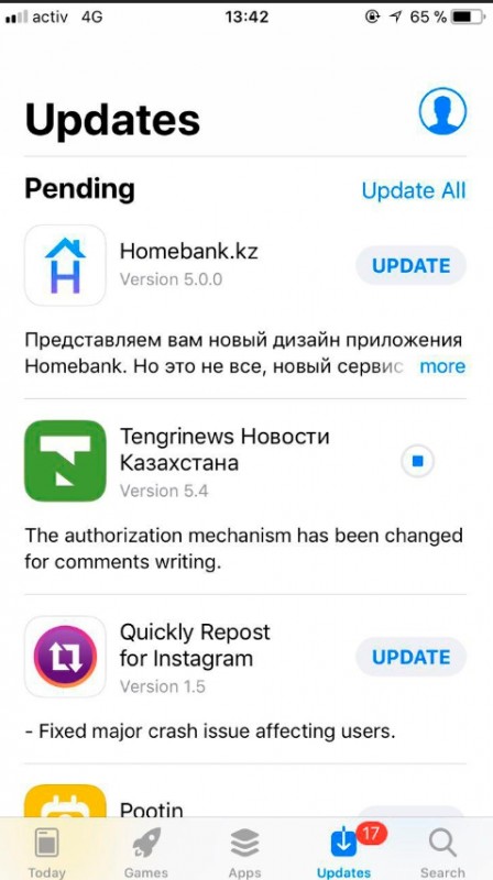 Обновить приложение Tengrinews.kz для iOS можно аналогичным образом.