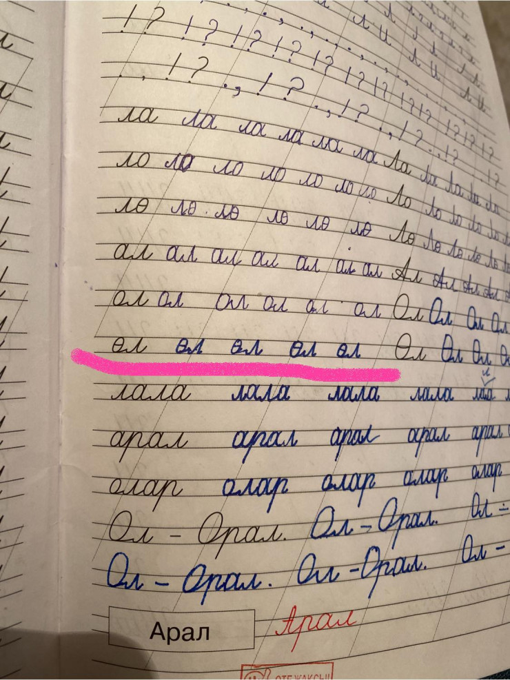 Гүлмира Аймағанбет есімді желі қолданушысы жариялаған суретте оқушыға "өл" сөзін жазу ұсынылғанын көруге болады. Бұл дәптер "Менің алтын жазу үлгім" деп аталады. Авторы - С.Трофимова. Ата-аналар бұл жағдай шектен шыққандық екенін айтып, жағымсыз сөзді балаға жаздыртудағы мақсат қандай екенін сұраған.
