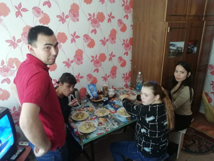 Уже с порога доносится ароматный запах еды, сегодня здесь праздник. И пусть бесбармак из окорочков, сироты признаются, вкуснее и не ели. То ли действительно так, то ли к еде присоединился вкус победы. В ближайшие дни все гости этой квартиры переедут во временное жилье, этого им удалось добиться благодаря Ассоциации детских домов в Казахстане. А пока здесь все еще негде яблоку упасть.