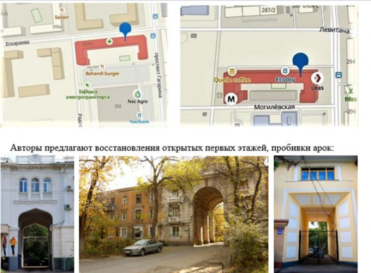 Другое нестандартное предложение архитектора - строительство домов с арками или даже пробивка их на первых этажах уже построенных домов. По ее словам, такие арки способствуют продуванию улиц вокруг и в архитектуре Алматы можно встретить достаточно много таких домов. По предложению архитектора, достаточно выкупить всего одну квартиру, чтобы сделать такой проем.