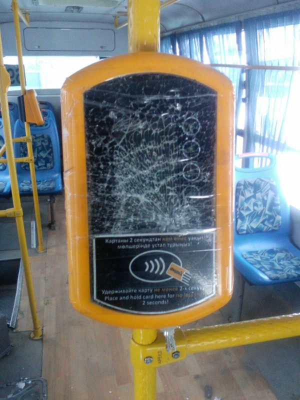3 ноября 2015 года сообщалось, что в одном из автобусов частного автопарка Алматы разбили терминал регистрации поездок "Онай" стоимостью 232 873 тенге.