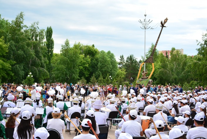Открытие монумента ознаменовалось импровизацией в исполнении местных актеров и акынов, олицетворяющих Үкілі Ыбырая, Биржан сал и Ақан сері, а 500 домбристов области одновременно исполнили кюй Туркеш и Курмангазы "Сарыарқа".