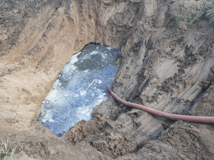 Около месяца назад в 200 метрах от места аварии произошел похожий порыв. Выяснилось, что труба из стекловолокна не выдержала давления грунта и агрессивных канализационных стоков. Ее попросту расплющило.