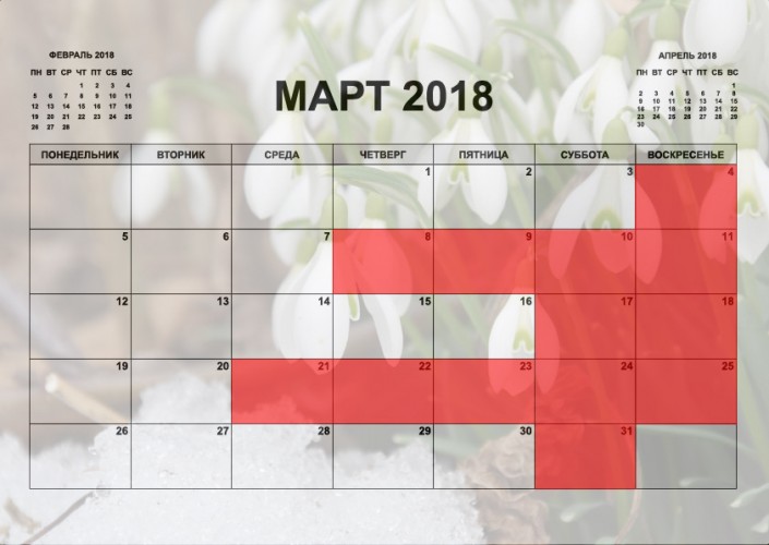 Выходной день с субботы, 3 марта, перенесен на пятницу, 9 марта