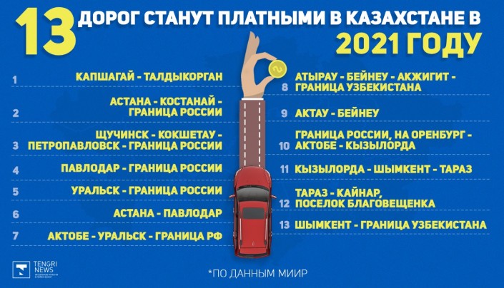 В 2021 году еще 13 автомобильных трасс станут платными в Казахстане, передает Tengrinews.kz со ссылкой на пресс-службу Министерства индустрии и инфраструктурного развития.