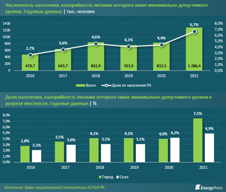 В 2021 году 1,3 миллиона казахстанцев питались ниже минимально допустимого уровня по калорийности, передает корреспондент Tengrinews.kz со ссылкой на Energyprom.kz.