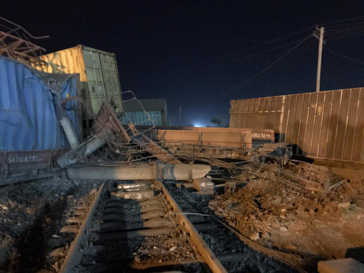 "24 октября 2020 года в 02.31 в Шымкенте на железнодороной станции произошел сход 13 вагонов (вагоны пустые, состав из 21 вагона. Стрелка № 117) с опрокидыванием. Жертв и пострадавших нет. Причины происшествия выясняются", - сообщил Уали.