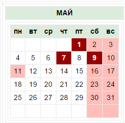 Таким образом, общее количество выходных в мае, включая праздники, составит 13 дней.