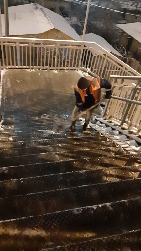 По состоянию на 8.00 в горной части города выпадение снега продолжается. В целях предупреждения гололеда было организовано дежурство 155 пескоразбрасывателей.