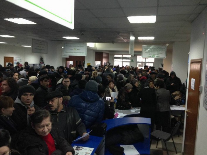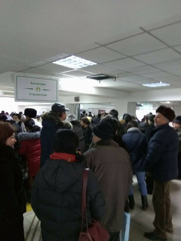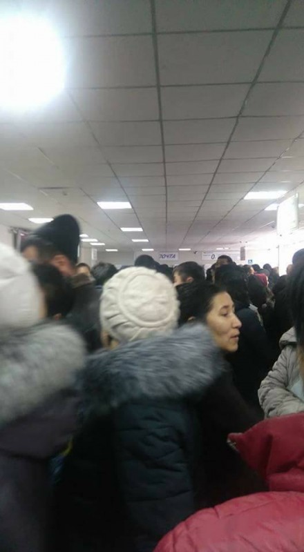 В сети также появились кадры из Алатауского района Алматы. Их в группе общественного объединения "ОСА" в Facebook разместил пользователь Андрей Стрельников. Судя по фото, люди не помещаются в здание ЦОНа и вынуждены ожидать своей очереди на улице.
