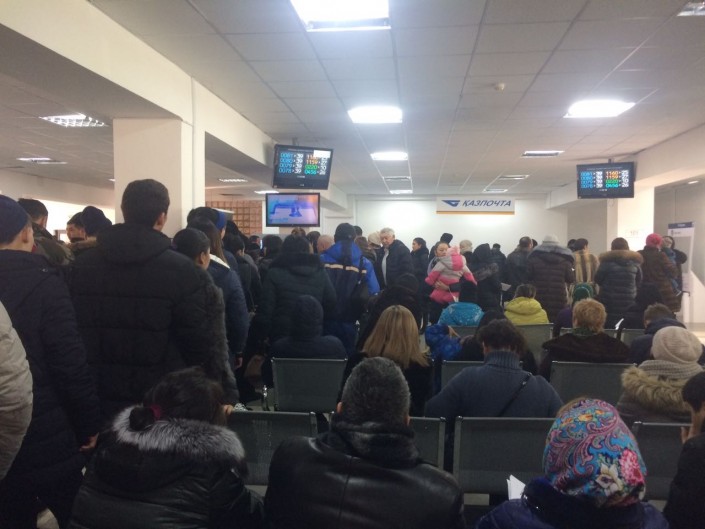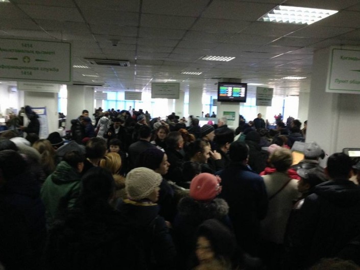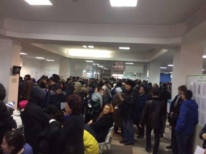 В центре обслуживания населения Алмалинского района Алматы с утра наблюдаются внушительные очереди.