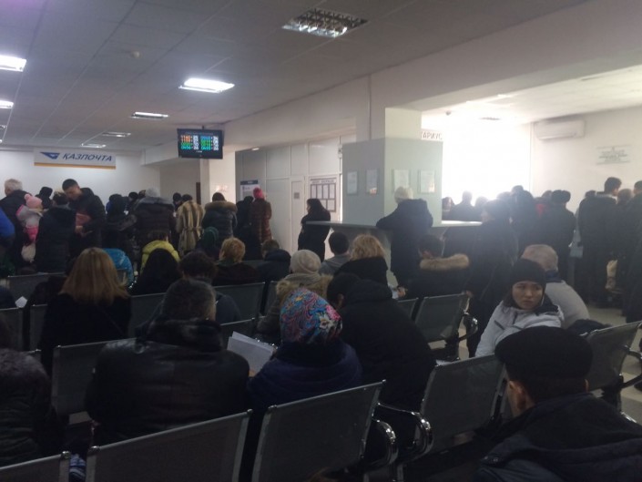 Между тем казахстанцы выкладывают в соцсетях кадры с большими скоплениями людей в центрах обслуживания населения Алматы, Алматинской области и Астаны.