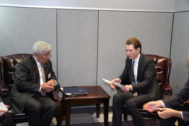 Ключевыми темами состоявшихся переговоров стали продвижение ранее озвученных Нурсултаном Назарбаевым международных инициатив и предстоящее членство Казахстана в Совете Безопасности ООН в 2017-2018 годах. Идрисов напомнил Генассамблее о 25-летии независимости нашей страны и отметил, что еще в 1991 году некоторые наблюдатели сомневались в способности Казахстана выжить в качестве суверенного государства. Такие сомнения были высказывались с учетом многонациональности и многоконфессиональности населения страны, несбалансированности экономики, огромного материального и морального грузов в виде военной инфраструктуры и ядерного арсенала.