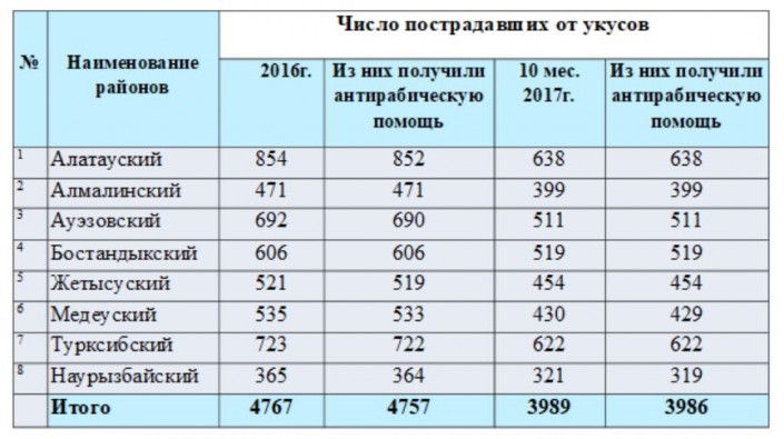 По данным городской ветеринарной службы, чаще всего бродячие собаки нападали на жителей Алатауского и Турксибского районов.