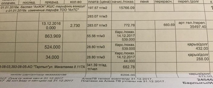 "За коммунальные услуги вышло 24 тысячи тенге, из них 15 тысяч тенге только за отопление. Я посчитала, что рост произошел на 550 процентов за один месяц. Я оплатила. Сходила в КСК, мне сообщили, что общедомовой счетчик не сломан, такой тариф дали тепловые сети. Сказали, что декабрь был холодный. Хотя это не самый холодный месяц, батареи еле теплые были, и мы использовали электрический обогреватель", - сказала женщина.