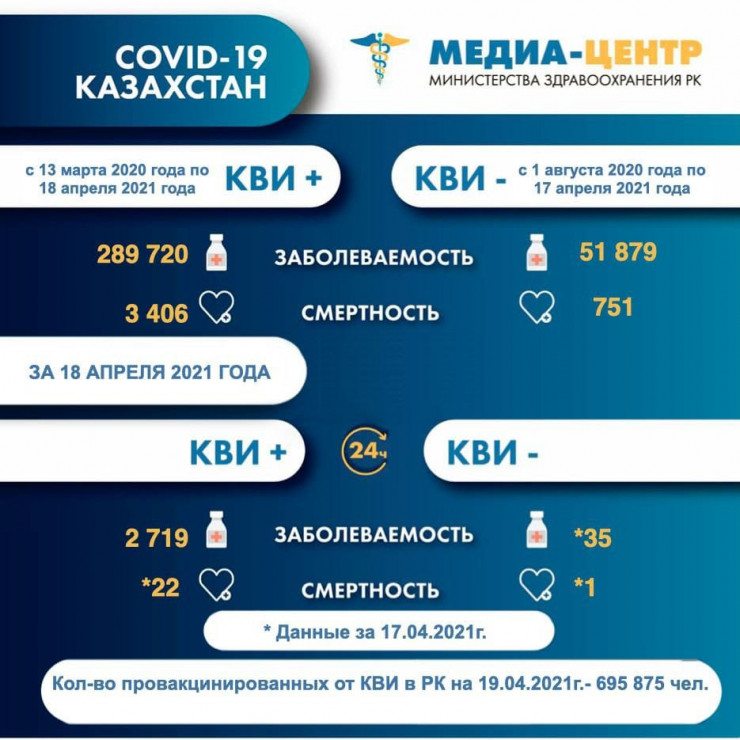 На 23 апреля 2021 года зарегистрировано 86 новых случаев заболевания, 3 случая с летальным исходом. Выздоровели 85 человек.