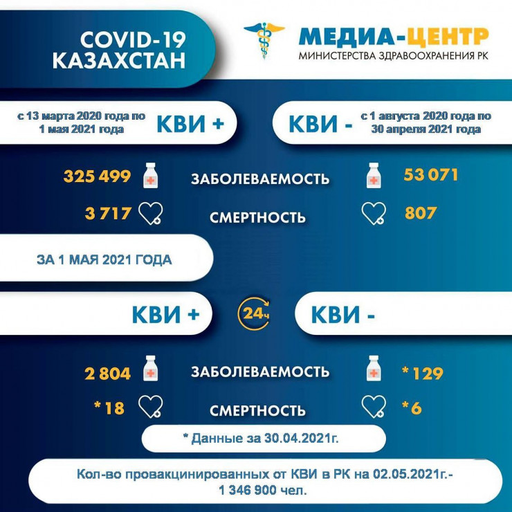 Отметим, что 1 мая в Казахстане зарегистрировали 2804 новых случая заражения коронавирусом. Это на 73 случая меньше, чем было днем ранее. 30 апреля зафиксировано 2877 случаев.