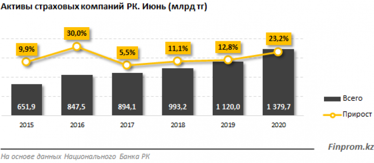 В целом рынок страховых организаций Казахстана растет довольно быстрыми темпами: за последние пять лет активы страховых организаций увеличиваются в среднем на 16,5 процента за год. По состоянию на конец июня активы страховщиков достигли 1,4 триллиона тенге - на 23,2 процента больше, чем в аналогичном периоде прошлого года.