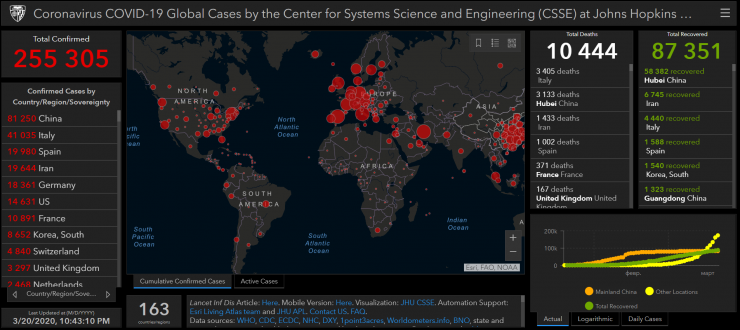 В мире число зараженных за сутки возросло на 32 тысячи, превысив 255 тысяч человек. В Китае количество больных увеличилось на 96 человек, составив 81,2 тысячи. В Италии, напротив, за сутки прибавилось 5,3 тысячи больных. Общее число зараженных в стране превысило 41 тысячу. Еще 3405 человек скончались от болезни.