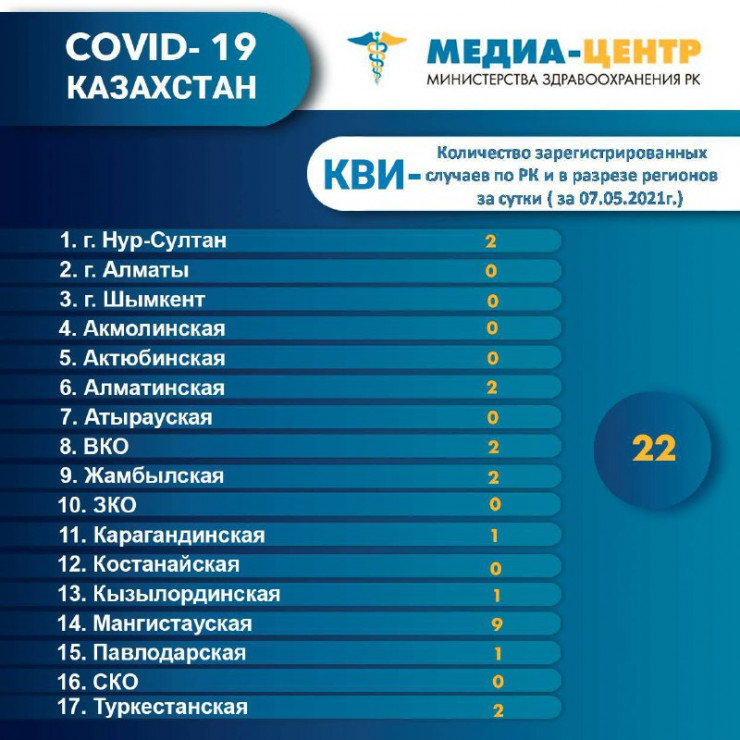 Информация о заболеваемости коронавирусной инфекцией в РК на 9 мая 2021 года