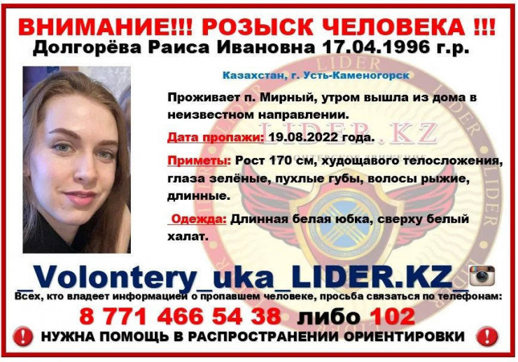 26-летняя девушка вышла из дома и исчезла в Усть-Каменогорске © instagram/volontery_uka_lider.kz