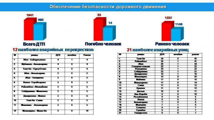 "Для снижения аварийности в рамках программы Vision Zero совместно с Управлением городской мобильности указанные опасные участки будут обновлены. К примеру, как вы уже заметили, на некоторых участках и перекрестках нанесены необычные ярко-красные, желтые и даже вафельные разметки. Это сделано для увеличения внимания водителей", – сообщил начальник Департамента полиции города Канат Таймерденов.