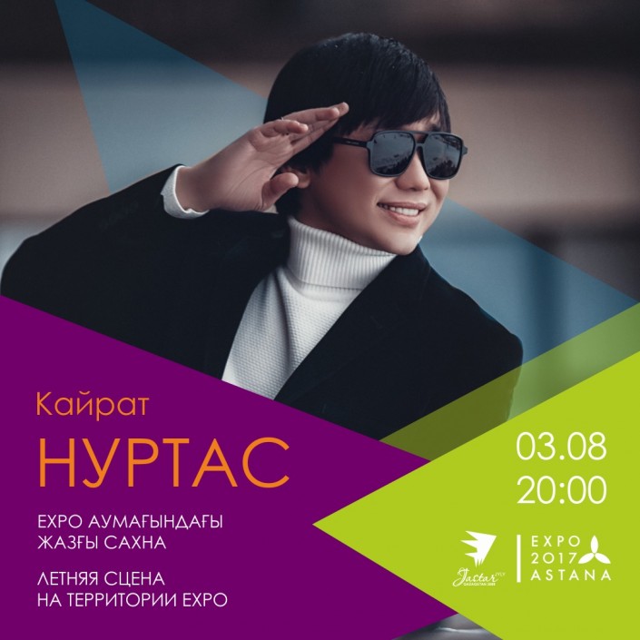 На летней сцене EXPO пройдет концерт с участием Кайрата Нуртаса, финалиста проекта "Голос. Дети" Ержана Максима и бойзбенда Mad Men. На протяжении трех часов артисты будут радовать своих поклонников известными хитами, новыми песнями и зажигательными танцами.