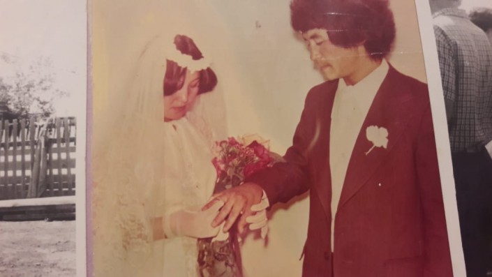 "В 1976 году Канат уехал служить в армию в Московскую область, раз в два месяца мы обменивались письмами, а после его возвращения из армии поженились. Свадьба была сыграна на мой день рождения 25 февраля 1979 года, это было воскресенье. Было около 150 гостей, свадьба проходила в столовой кирпичного завода, где работал Канат", - вспоминает женщина.