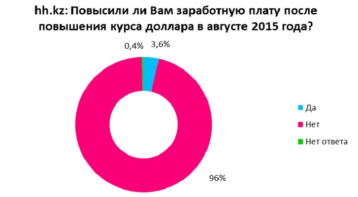 Согласно данным опроса, проведенного компанией HeadHunter Казахстан, 3,6 процента казахстанцам повысили заработную плату после изменения курса тенге, которое произошло в августе этого года. Еще 12,2 процента респондентов ожидают повышения до конца года.