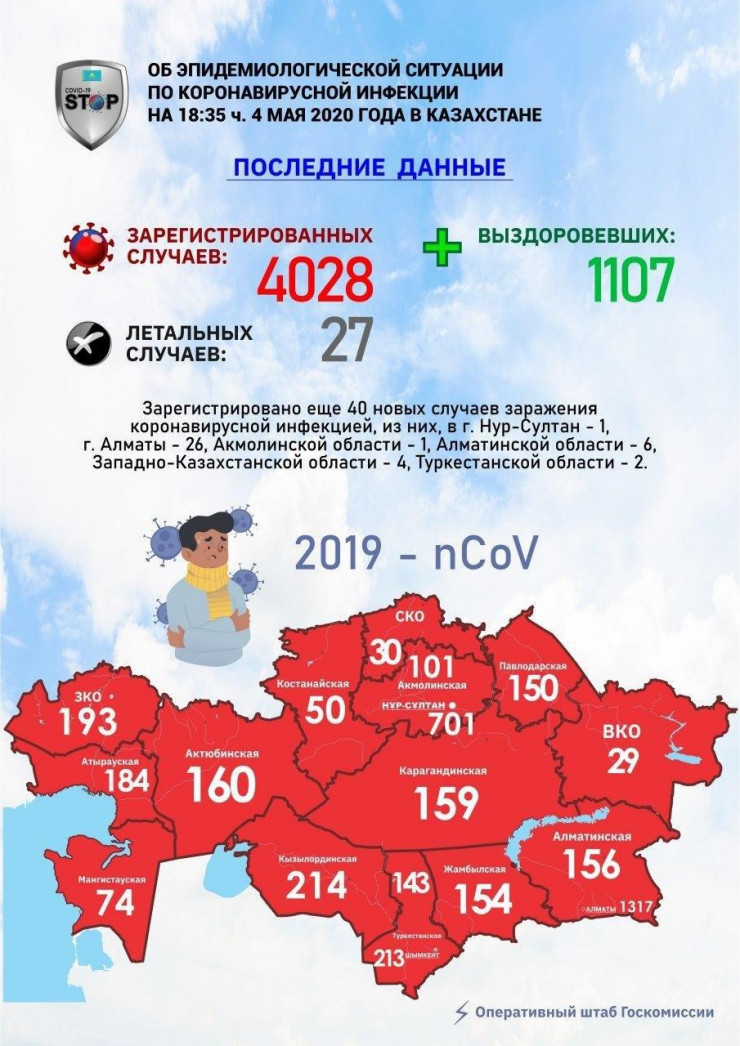 Число заразившихся коронавирусом в Казахстане выросло до 4028.