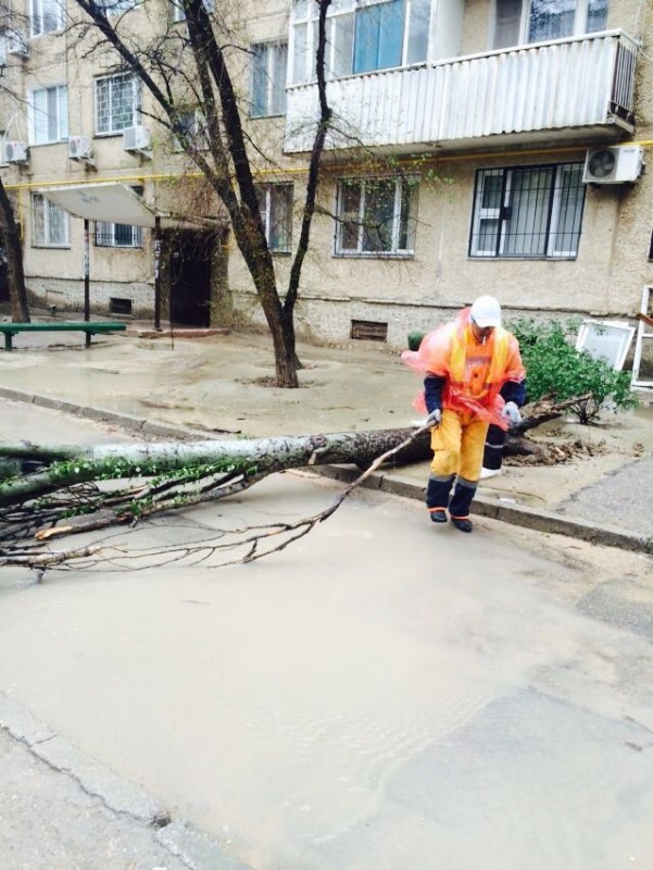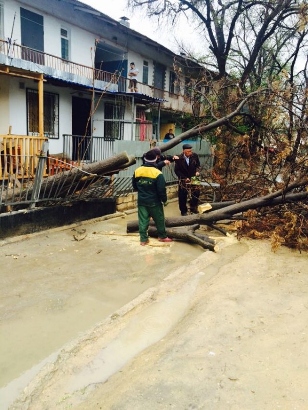 "По Актау работа по ликвидации последствий обильных осадков ведется на 7 участках: "Желтый рынок" 32 микрорайон, КГТУИ им. Ш.Есенова, ТЦ "Олжа" 30 микрорайон, территория 15 дома 28 микрорайон, 28 "а" Бизнес-центр "Аксункар", территория перед ТЦ "Астана" и автодорога между площадью "Ынтымак" и акиматом Мангистауской области. Привлечено 4 единицы спецтехники, 3 мотопомпы. Задействовано 12 человек. Кроме того, в результате сильного ветра возле 28 дома 14 микрорайона упало дерево на автомашину "Тойота Камри", также упало дерево во дворе 25 дома 8 микрорайона. Пострадавших нет. Бригады коммунальных служб выезжают по звонку от жителей, в чьих дворах есть упавшие деревья и их сразу же вывозят", - сообщила пресс-секретарь ДЧС Мангистауской области Гульнара Ходжабекова.