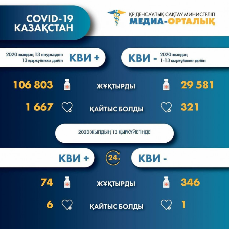 С 1 по 13 сентября 2020 года зарегистрировано: 29 581 заболевший, 321 случай с летальным исходом, выздоровели – 6 823 человека.