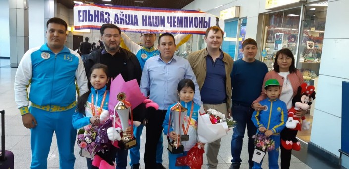 Встреча победительниц турнира в Турции в аэропорту Алматы. Фото из личного архива семьи.