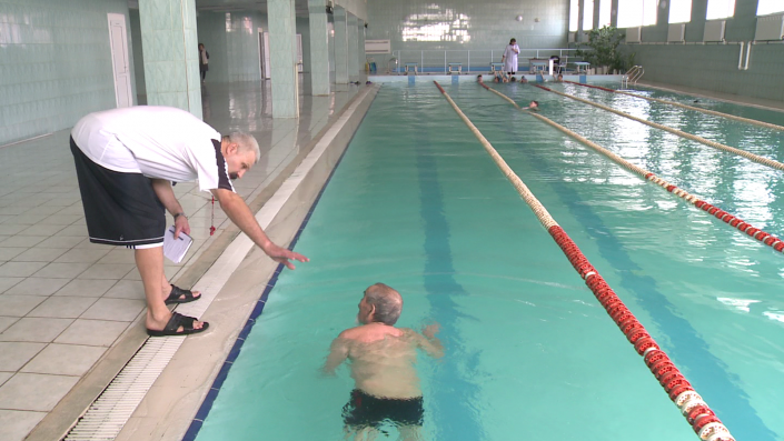 "Я познакомился с Беркутом Есжановичем 10 лет назад. У него были серьезные нарушения опорно-двигательного аппарата. Был физически слаб. Были слабые мышцы и плохой аппетит. Когда он увидел наш бассейн, то попросился заниматься у нас. За эти 10 лет произошли удивительные изменения. С каждой тренировкой он становился бодрее. У него окрепли мышцы, и он стал себя чувствовать намного лучше. Он стал дольше гулять на улице, и длительность заплывов увеличилась. Он никогда не пропускал тренировки. Только из-за погодных изменений и общественной деятельности, которой он активно занимается. Он - пример для подражания не только для молодежи, он наша гордость! Он приводит к нам своих товарищей-ветеранов. Они общаются с детьми, наблюдают за ними. Желаю Беркуту Есжановичу и остальным крепкого здоровья!" - рассказывает тренер ветерана Сергей Кокарев.