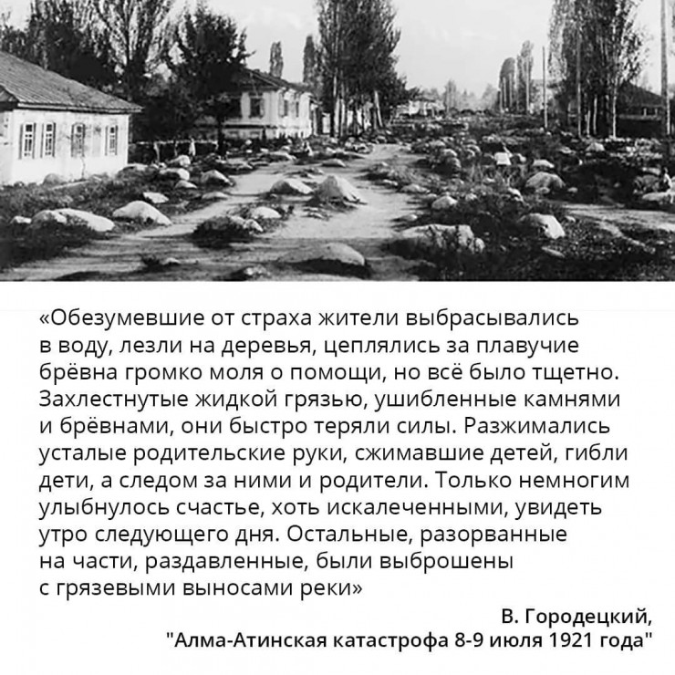 В этот день 99 лет назад на Алматы обрушился самый страшный сель в истории города. Он сошел по руслу Малой Алматинки после продолжительных ливней с градом.⁣