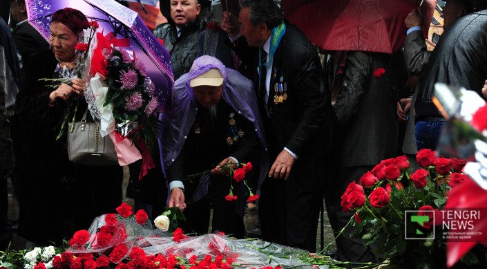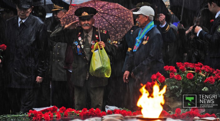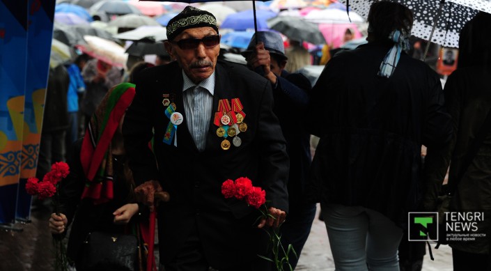 После речи акима прозвучал гимн Казахстана, а затем состоялось возложение цветов. Собравшиеся поздравляли ветеранов и кричали "Спасибо за победу!". "Для меня День Победы самый лучший и дорогой праздник. Спасибо, что нас не забываете и помните наш подвиг. Я воевал на Втором Прибалтийском фронте, в штурмовой инженерно-саперной бригаде. Мы прошли от города Невель до Риги", - сказал ветеран войны Петр Луньков.