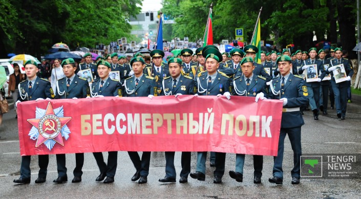 Также стоит отметить, что в Алматы, несмотря на дождь, состоялось крупнейшее казахстанское шествие "Бессмертного полка", в котором приняли участие, по оценке организаторов, более 20 тысяч человек. Жители города с портретами ветеранов Великой Отечественной войны и зонтами прошли от площади "Астана" до парка имени 28 гвардейцев-панфиловцев.