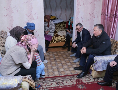 Аким Карагандинской области Нурмухамбет Абдибеков посетил семьи погибших горняков шахты "Саранская", сообщает корреспондент Tengrinews.kz со ссылкой на пресс-службу акима.