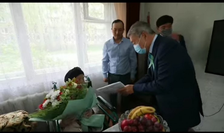 Накануне Дня Победы глава региона Даниал Ахметов посетил нескольких ветеранов и тружеников тыла Усть-Каменогорска и Семея, среди них была 99-летняя Хауа Балунбаева.