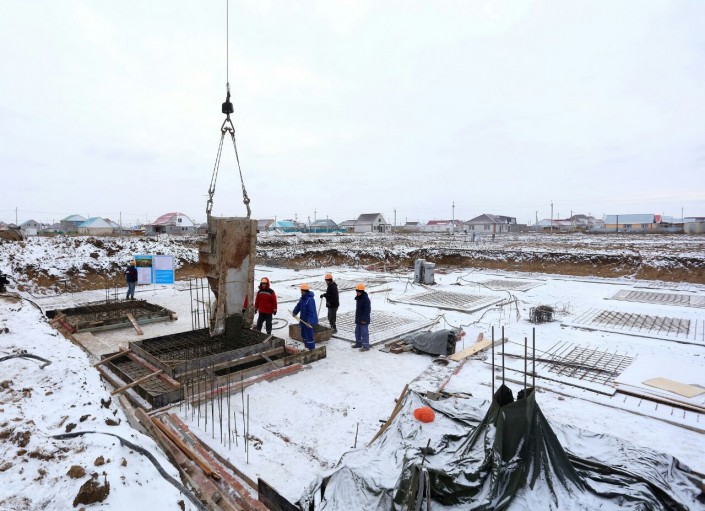 Аким ЗКО Алтай Кульгинов поучаствовал в заливке фундаментов двух школ Фото предоставлено акиматом ЗКО