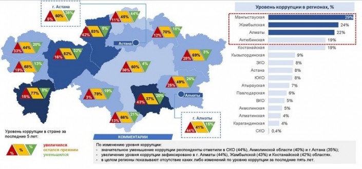 Стоит отметить, что по итогам социального исследования Мангистауская область заняла в рейтинге первую строчку по уровню коррупции. Глава региона считает, что этот рейтинг необходимо пересмотреть, так как он не объективен. Айдарбаев отметил, что разница в показателях между регионами составила 50-70 процентов. В одной стране, по мнению акима, такого быть не может.