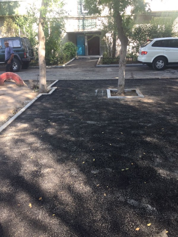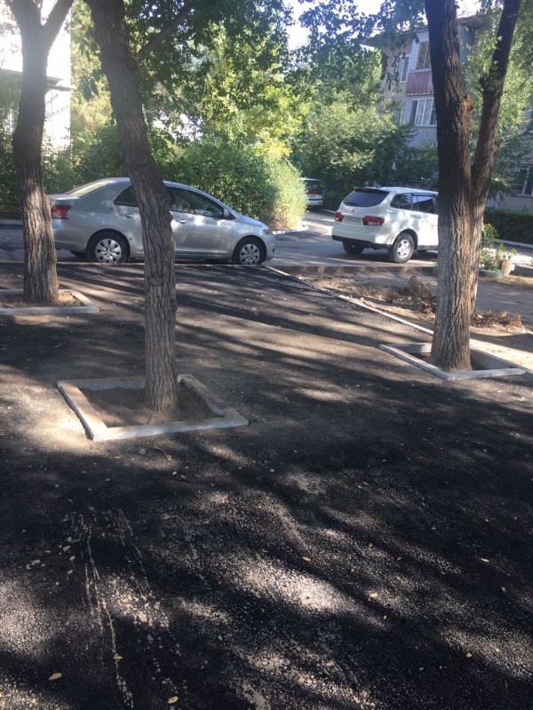 "Это детская площадка. Неделю назад стояли качели, песочница, была тень от деревьев. Было все. На следующий год сдохнут эти деревья, домики будут строить из бордюров, которые развалятся к лету. (...) Мы эти деревья всем двором сажали лет 30 назад. А теперь они просто погибнут", - написала алматинка Евгения Лейман в Facebook.