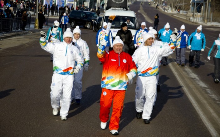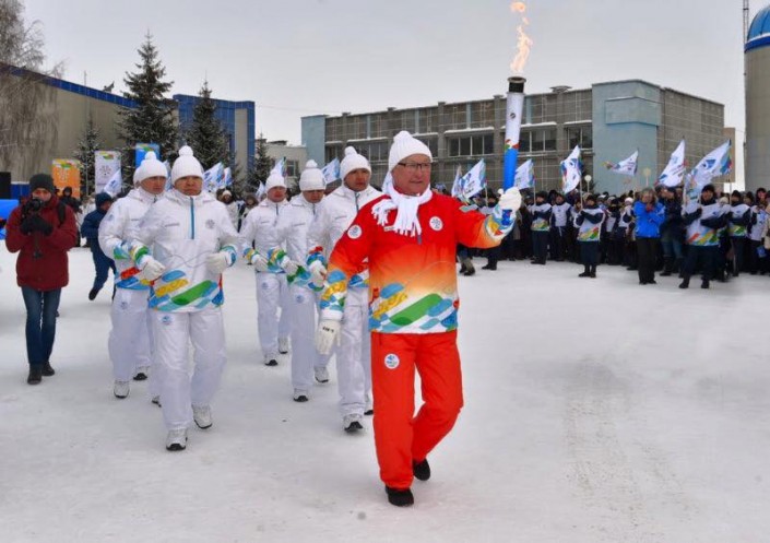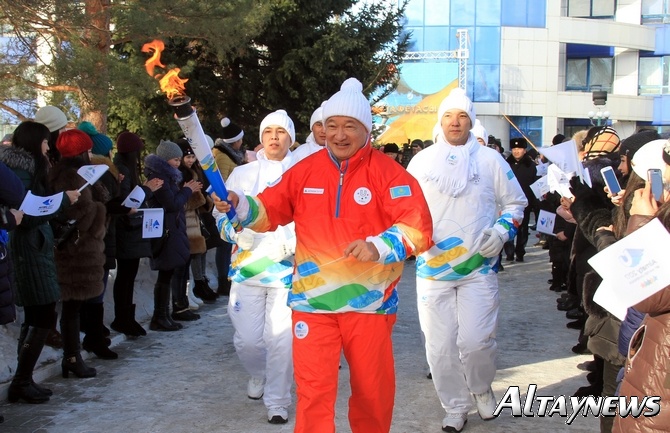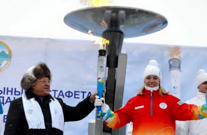 В Павлодаре факел Универсиады зажгли 26 января, однако аким области Булат Бакауов, даже если и посетил эстафету, в объективы фотокамер не попал. Зато героем спортивного праздника стал квартет ездовых хаски, который прокатил на санях мастера спорта по тогызкумалаку Анастастию Фосс, несущую факел Универсиады.