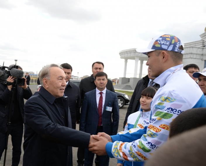 В спортивно-развлекательном комплексе "Арай" состоялась встреча Елбасы с молодежью региона, в том числе с серебряным призером чемпионата мира по боксу Камшыбеком Конкабаевым, молодым бизнесменом Айдосом Сайлигараевым и воспитанницей детской деревни "Атамекен", ныне студенткой Российского государственного аграрного университета Наргиз Кашаповой.